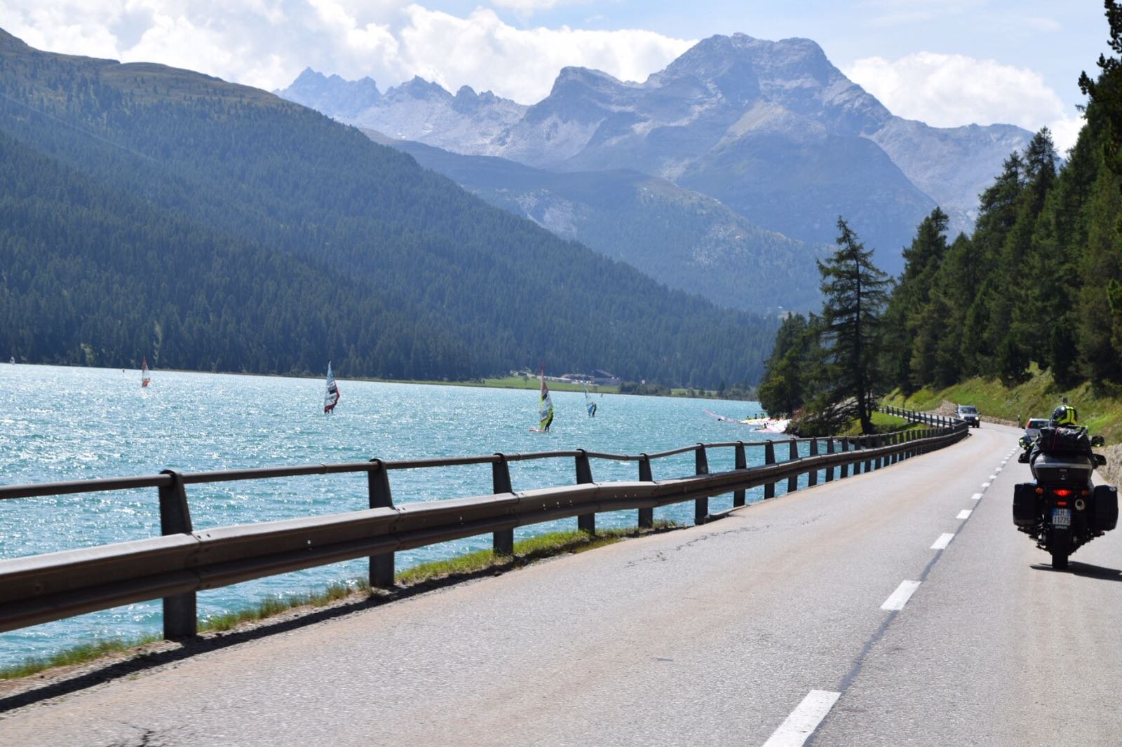 e dopo un po di bella strada al fianco di pascoli di mucche e pecore arriviamo a Saint Moritz bella cittadina ma non mi ha emozionato, però ho mangiato un hot dog leccornioso… Non troppo economico ma ne è valsa la pena … e poi ero un debito dallo Stelvio.